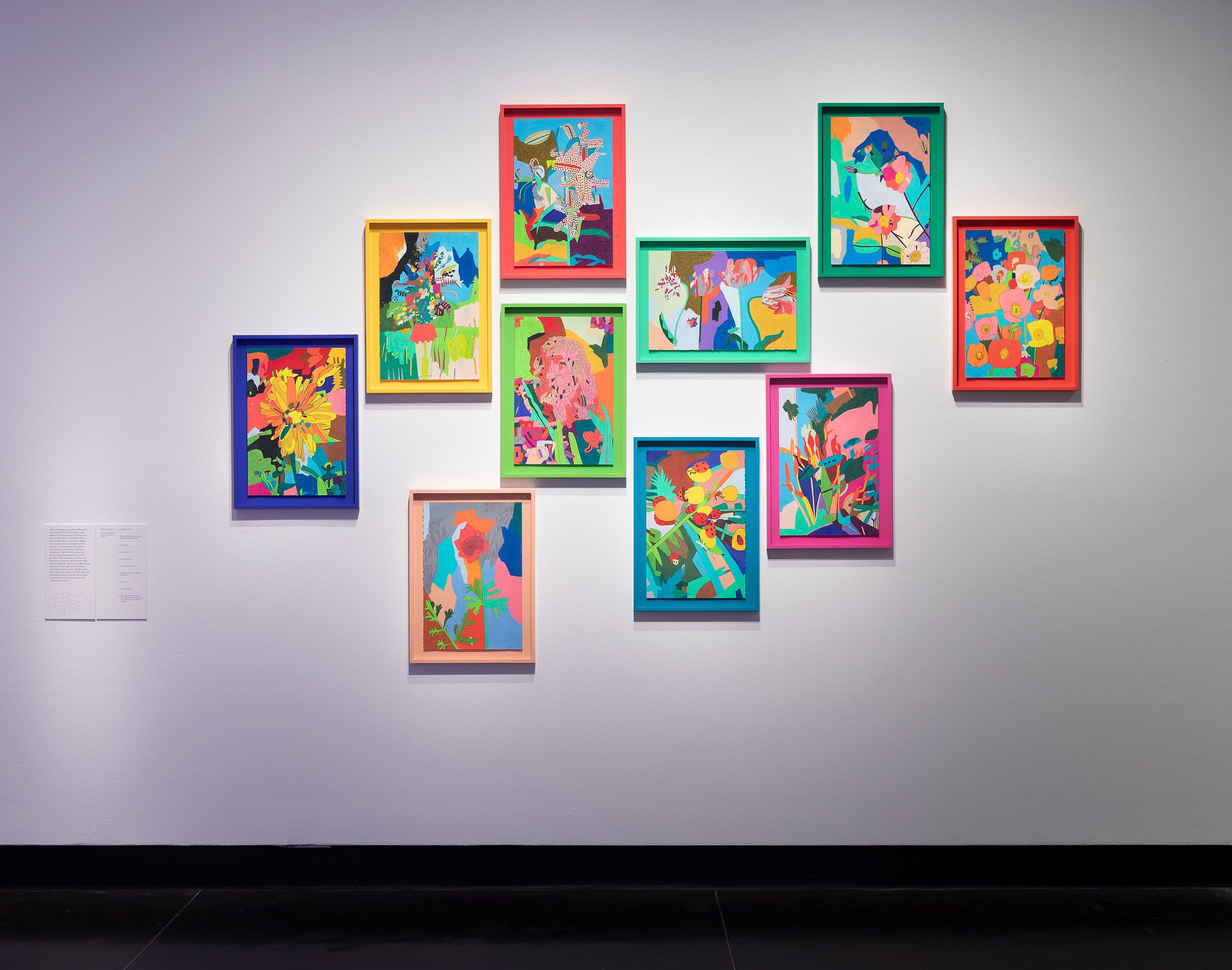 Anthony Romagnano’s series of flowers has been specifically produced in response to the exhibition. Working primarily with Prismacolour pencil, he builds dense, mosaic-like surfaces in which familiar subjects—here flowers, though he also depicts portraits and fragments of the everyday—are reimagined through saturated colour and intricate patterning. A defining characteristic of his work is the vibrancy and dynamic energy that emerges from a method grounded in close observation, repetition, and a strong sense of structure, combined with a deep interest in expression. The result is a highly personal exploration of how images can shift between representation and abstraction. Through patient mark-making and a distinctive rhythmic approach, he transforms ordinary scenes into vivid, layered compositions that invite viewers into his richly constructed visual world.