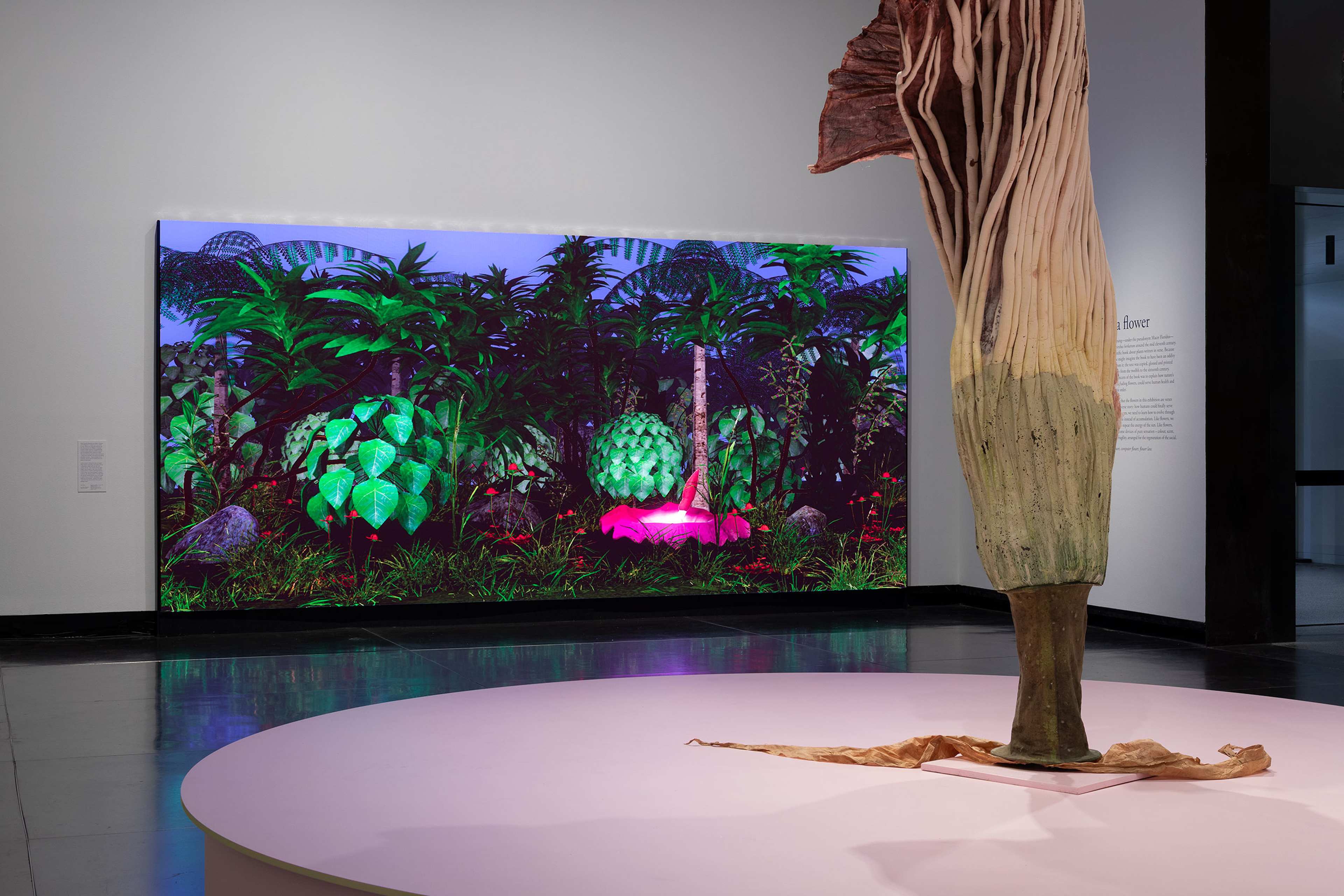 Installation view of A velvetant, a flower and a bird, Potter Museum of Art, the University of Melbourne, 2026. Featuring Derek Tumala, Kayamanan ng Pilipinas (treasures of the Philippines)2025-26; Ingela Ihrman, Amorphophallustitanum 2013, courtesy the artists. Photography by Christian Capurro.